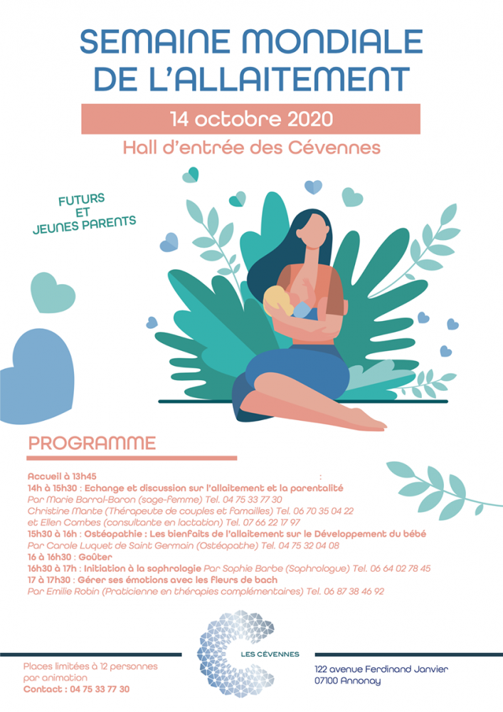 Et à l’occasion de la semaine de l’allaitement, ce mercredi 14 octobre, au centre de santé des Cévennes à Annonay, plusieurs ateliers sont proposés. Info et réservation auprès du centre de santé des Cévennes au 04 75 33 77 30.