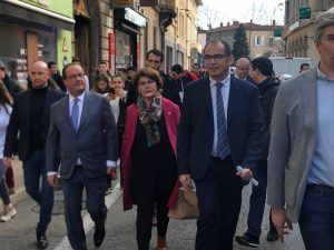 Photo : Michèle Victory, au centre, lors de la visite de François Hollande à Tournon-sur-Rhône, en janvier dernier