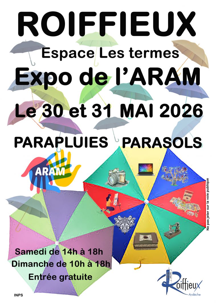 L’ARAM (Association Réfocalienne d’Activités Manuelles) organise sa traditionnelle exposition intitulée cette année « parapluies et parasols » le week-end du 30 et 31 mai 2026 à la salle des Termes le samedi de 14h à 18h et le dimanche de 10h à 18h.