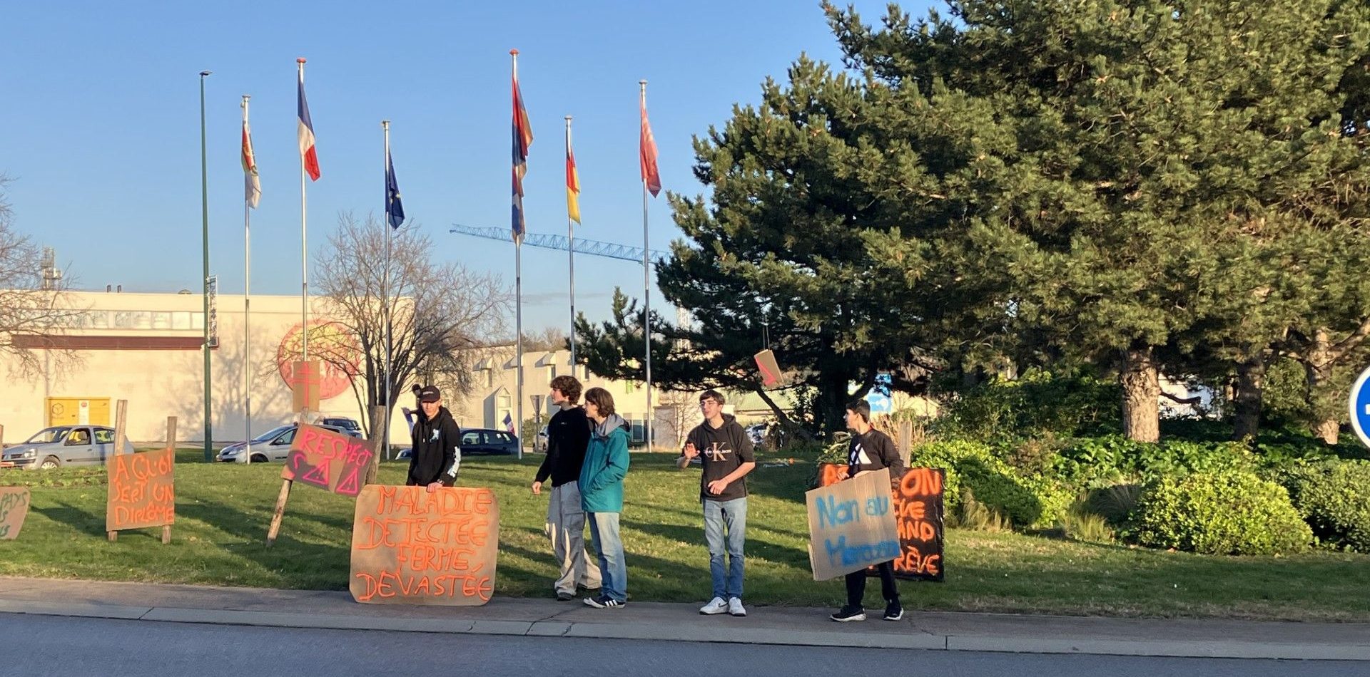 Plusieurs dizaines de lycéens et étudiants drômois se sont aussi réunis ce mercredi après-midi sur le rond-point des quatre vents, à Bourg-lès-Valence dans cette même commune, sollicitant la participation des automobilistes, qui ont répondu en klaxonnant. En plus de la question de la dermatose nodulaire contagieuse, ils entendaient aussi dénoncer, entre autres, le traité entre les pays de l’Union Européenne et ceux du Mercosur.