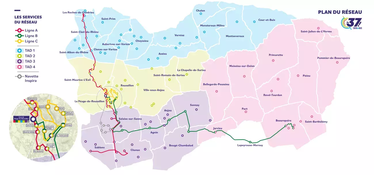 Ce réseau de transport est un projet de grande envergure. Il dessert les 37 communes de l’agglomération avec trois lignes principales. Une dizaine d’allers-retours par jour ont été développés sur ces routes régulières. La ligne B, qui fait la liaison entre Le Péage de Roussillon et Beaurepaire, a été ajoutée à cette occasion. Elle est sous expérimentation pendant un an. Son parcours connaîtra peut-être du changement au cours des prochains mois.