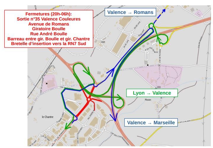 Par ailleurs, la circulation sera impactée dans la nuit de jeudi à vendredi. De 20 heures à six heures du matin cette nuit là, le giratoire Boulle et ses bretelles seront fermés. Pour rejoindre le centre-ville de Valence depuis le rond-point de l’autoroute A7 à Bourg-lès-Valence, il faudra rester sur la voie rapide, sortir au Plovier, reprendre la Lacra dans l’autre sens, sortie au plateau des Couleures et passer le long du magasin Botanic. Pour rejoindre Marseille depuis le Plateau des Couleures,il faudra longer le magasin Botanic, rejoindre le rond-point du Plovier via la RD 432 et entrer sur la Lacra en direction du sud. Toutes les informations sont disponibles sur un site internet dédié.