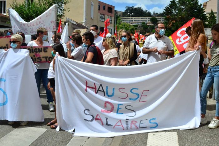 Parmi ces manifestants, plusieurs soignants de l’hôpital d’Annonay. Soignants qui ont dû faire face à la crise du Covid19 avec les moyens du bord et qui aujourd’hui attendent un changement.