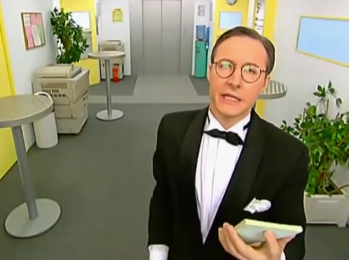 Capture écran : Alexandre Pesle, dans le rôle de Sylvain, le comptable dans Caméra Café.