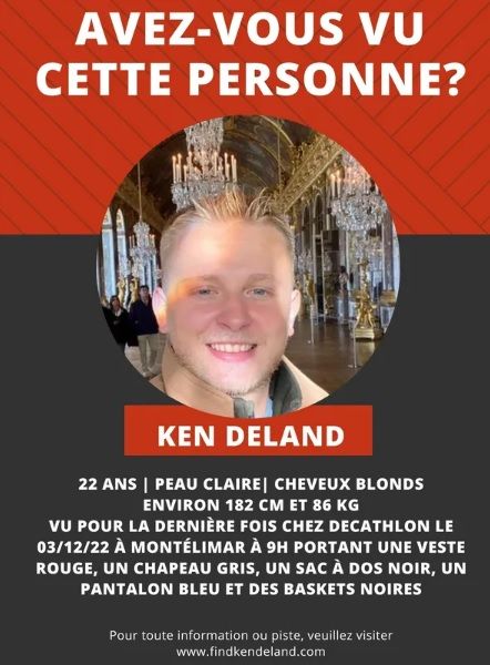 Ken DeLand avait visiblement du mal à se faire des amis en France. Il était censé retourner aux États-Unis le 15 décembre. Le parquet de Grenoble a ouvert une enquête pour disparition inquiétante. « Nous craignons le pire et souhaitons qu’il soit localisé », implore sa famille sur le site internet. Cette disparition fait la une des médias outre-Atlantique.