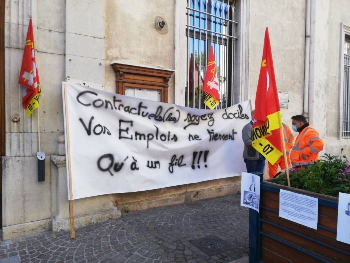Depuis 8h30 ce matin, plus de 80 agents de la Ville d’Annonay sont mobilisés devant la mairie. Ils demandent, notamment, la titularisation des agents et une meilleure prise en compte des conditions de travail des Atsem. Depuis le début de la crise sanitaire, les agents territoriaux spécialisés des écoles maternelles sont en première ligne dans les écoles, elles demandent une meilleure reconnaissance de ces conditions de travail. Une délégation syndicale est actuellement en pourparlers avec la maire.
