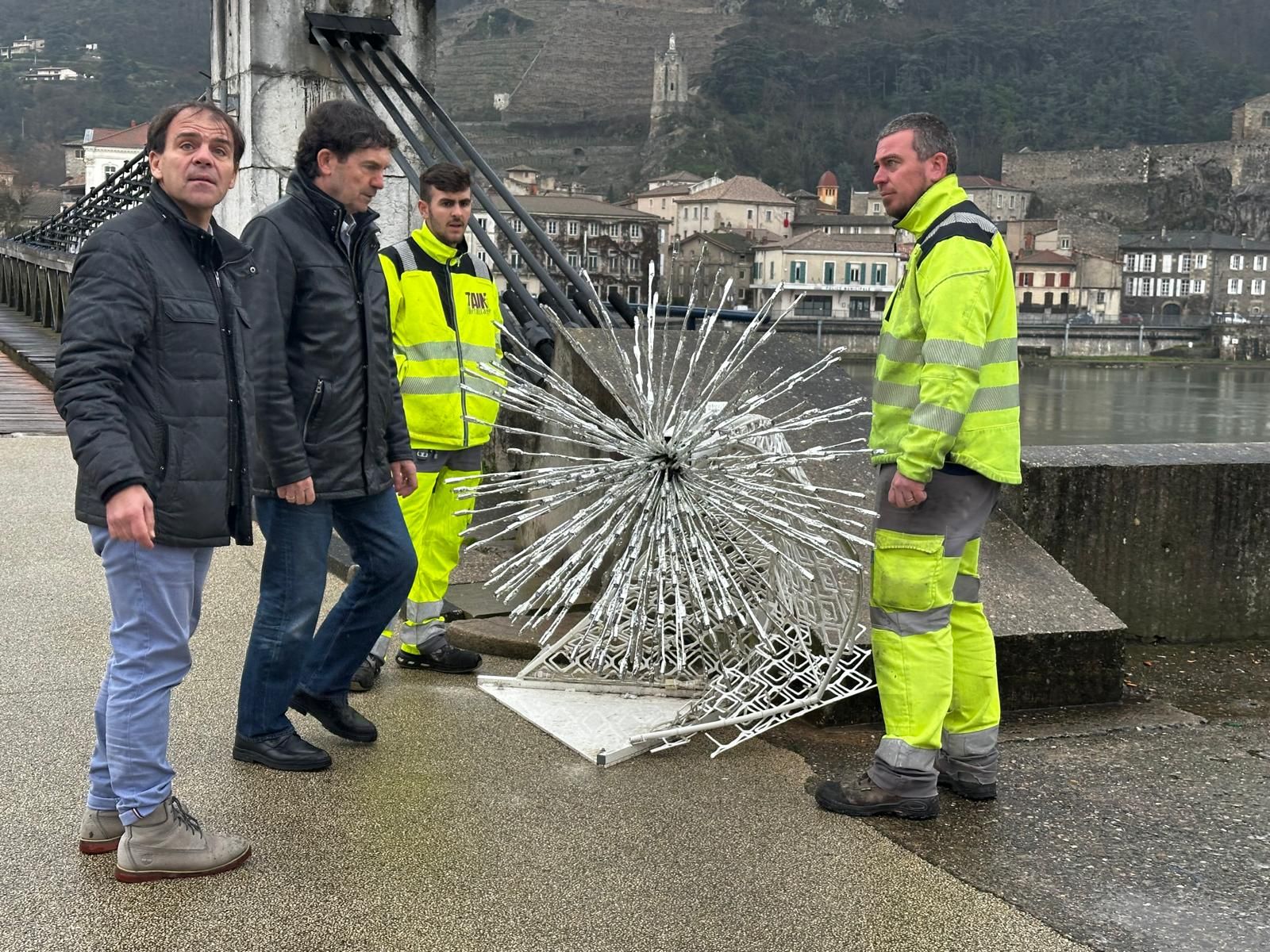 Selon un communiqué de la municipalité, « trois arches lumineuses ont été volontairement vandalisées », en l’occurrence à l’entrée de la passerelle qui relie la commune à celle de Tournon-sur-Rhône, mais aussi place du Taurobole. Plusieurs boules du sapin géant ont par ailleurs été endommagées, au même titre que le village enchanté et que le renne du Père Noël. La ville déplore également le vol d’un sapin, qui avait trouvé place devant l’Hôtel-de-ville.