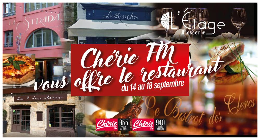 Que diriez-vous d’aller déjeuner ou dîner avec la personne de votre choix en plein centre-ville de Valence ? Chérie FM Vallée du Rhône vous propose cette semaine de vous attabler dans l’un des restaurants situés dans le secteur de la place des Clercs, célèbre pour son marché du samedi matin ! Cinq enseignes participent : Le Marché, La Strada, l’Etage, le 7 des Clercs, et le Bistrot des Clercs ! Pour gagner, écoutez Chérie FM tous les matins et répondez correctement à la question posée.